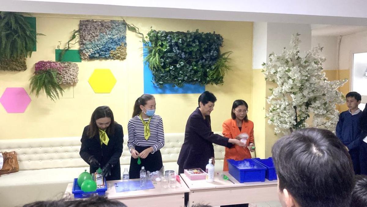 Сабақ барысы: физика пәні мұғалімдері қоңырау уақытында оқушыларға әртүрлі физикалық тәжірибелер көрсетті. Әр тәжірибенің орындалуы кезінде оқушылар сұрақтарға жауап беріп, белсене қатысты. Қойылған сұрақтарға дұрыс жауап берген оқушылар арнайы сыйлықтарға ие болды.