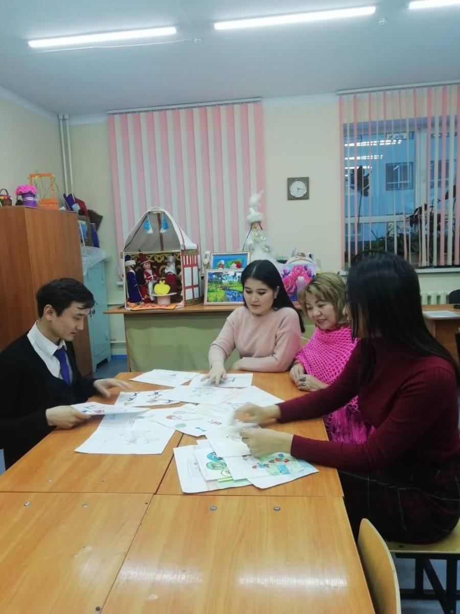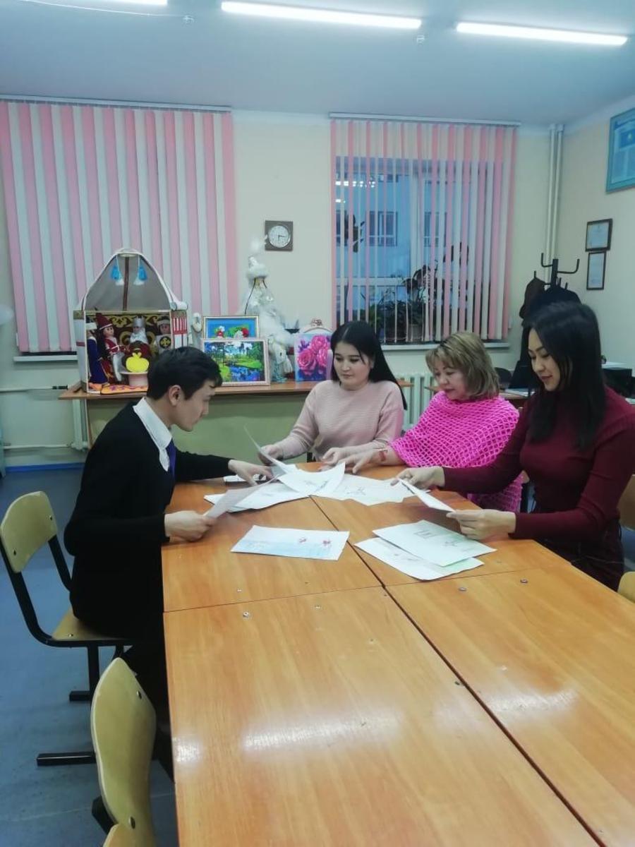 Қазылар алқасының құрамы төмендегідей болды: Қосымша білім беру педагогы – Кадирбергенова К.Б., аға тәлімгер Нұрбек Серікбайұлы, Психолог Умирова Л. Көркем еңбек пәні мұғалімі Мақұлбек Ж.