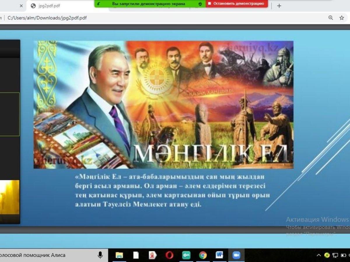 2. Қаншама құрбандықпен қол жеткен тәуелсіздігімізді құрметтей , қастерлей білуге тәрбиелеу, Қазақстанның келешегі үшін аянбай еңбек етуге шақыру.