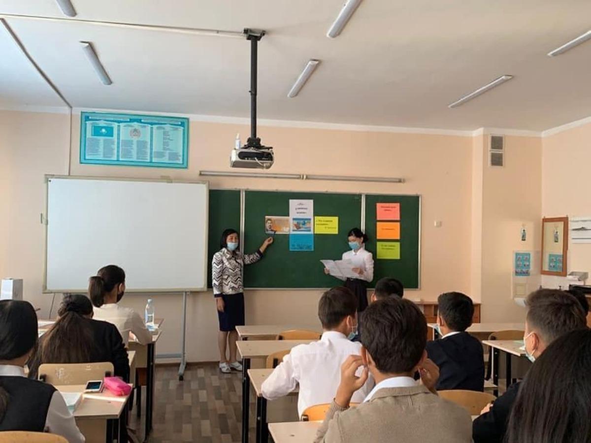 «Мемлекеттік тілді қаншалықты құрметтейсіз?» деген сұрақ аясында оқушылар әңгіме қозғап, өз пікірлерін білдірді. Тәрбие сағатында оқушылар «Қазақ тілі ең бай тіл» атты бейнеролигін тамашалап, ой бөлісті.
