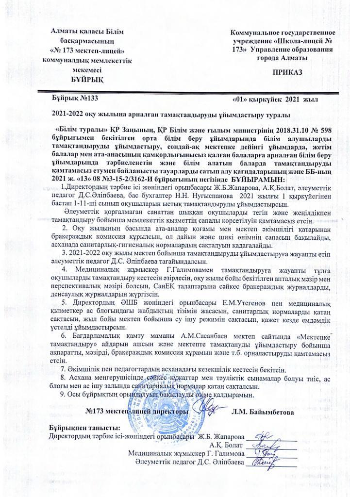 №173 мектеп-лицей 2020-2021 оқу жылы Жазғы мектеп туралы есеп