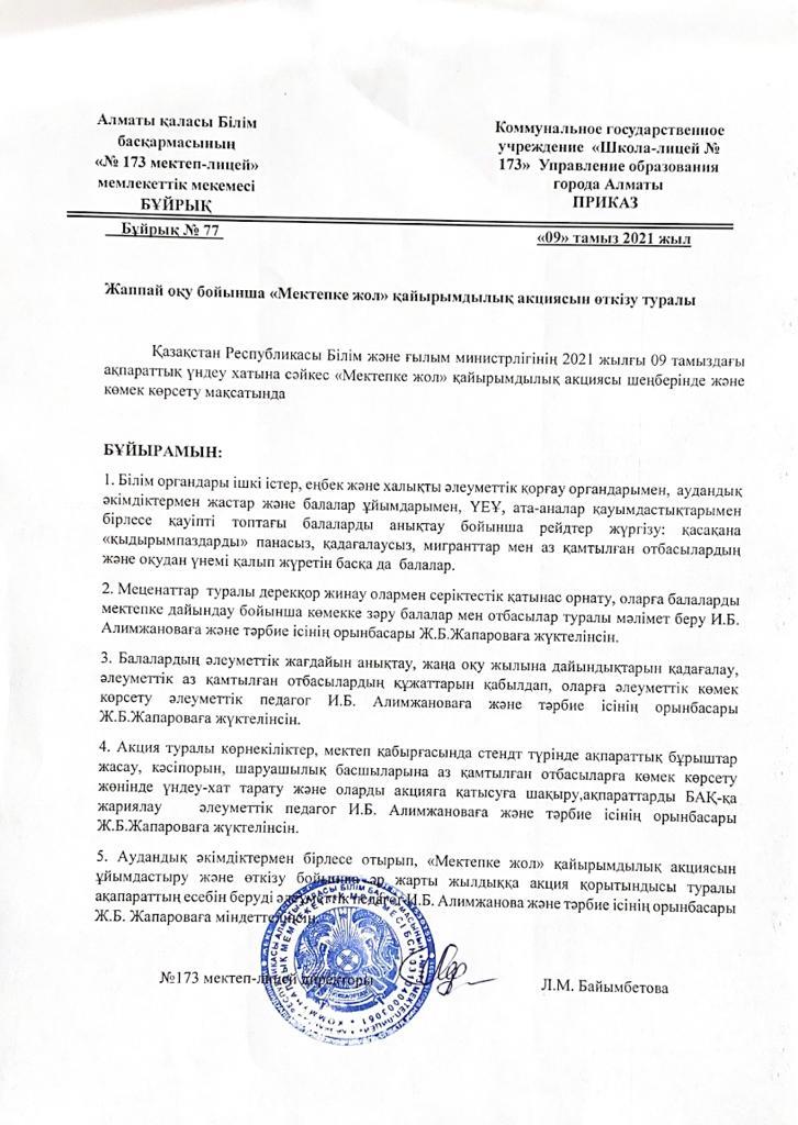 27 сентябрь 2021 0 1 2 3 4 5 Жаппай оқу бойынша "Мектепке жол" қайырымдылық акциясын өткізу туралы Осы беттің QR-коды:QR-код этой страницы: