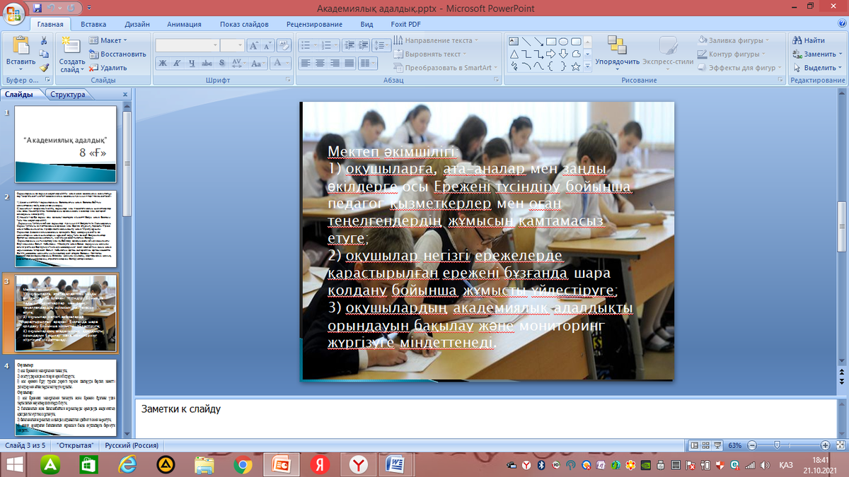 Оқушыларға қандай жағдайда академиялық адалдық бұзылатыны жайлы айтылды.