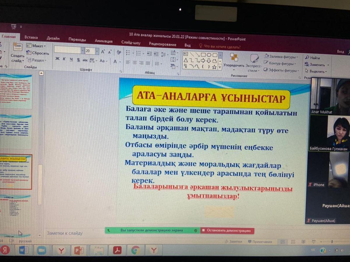 "Ата-ана мен бала арасындағы қарым-қатынас" ата-аналар жиналысы
