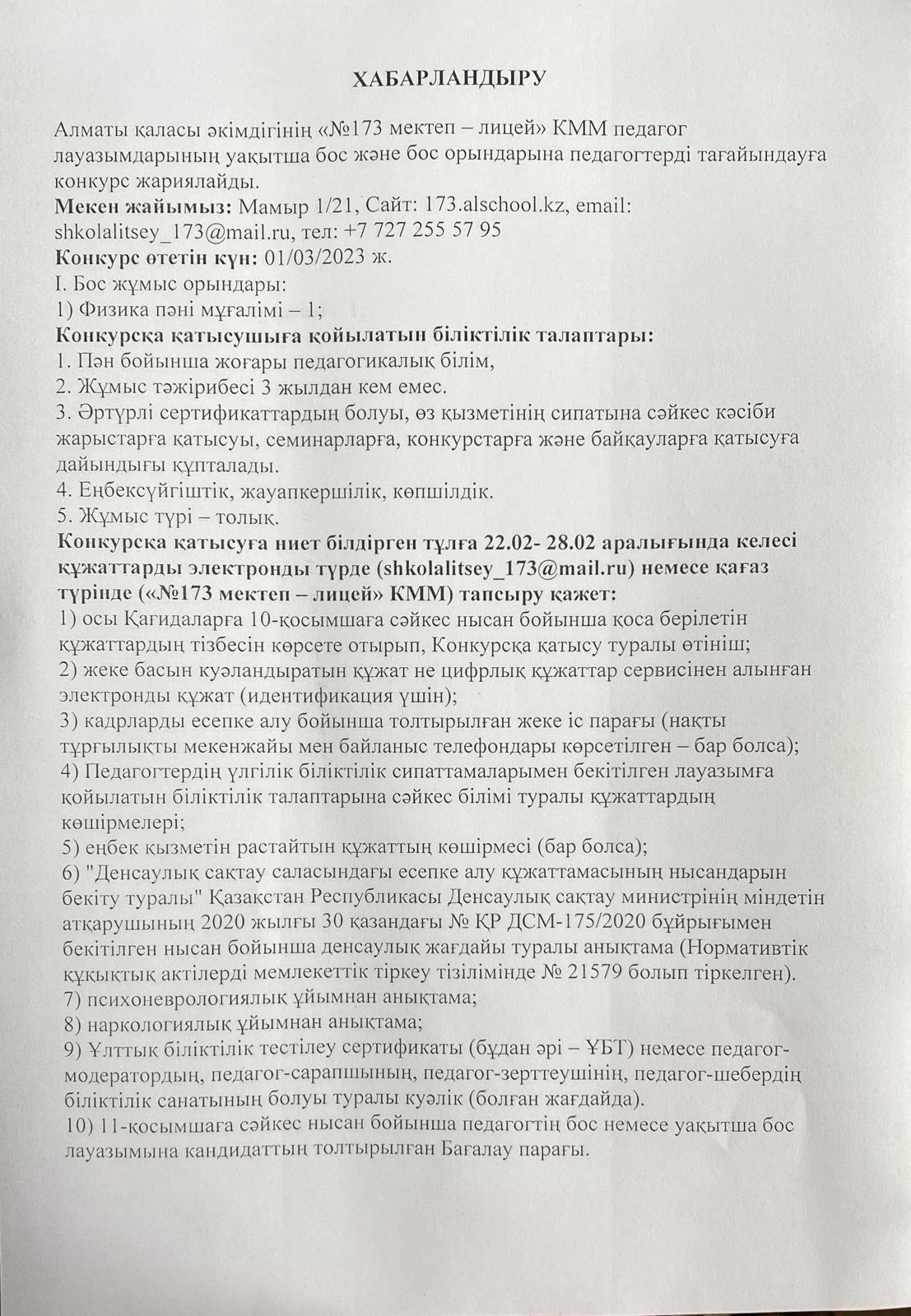 21 февраль 2023 0 1 2 3 4 5 Бос орындарға педагогтерді қабылдау конкурсы Осы беттің QR-коды:QR-код этой страницы: