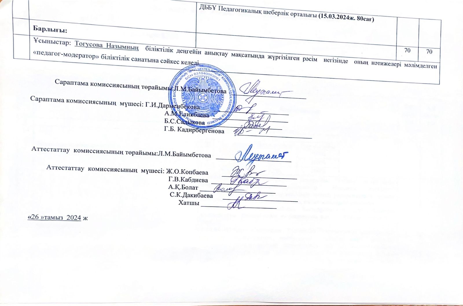 Бағалау парағы Тогусова Назым