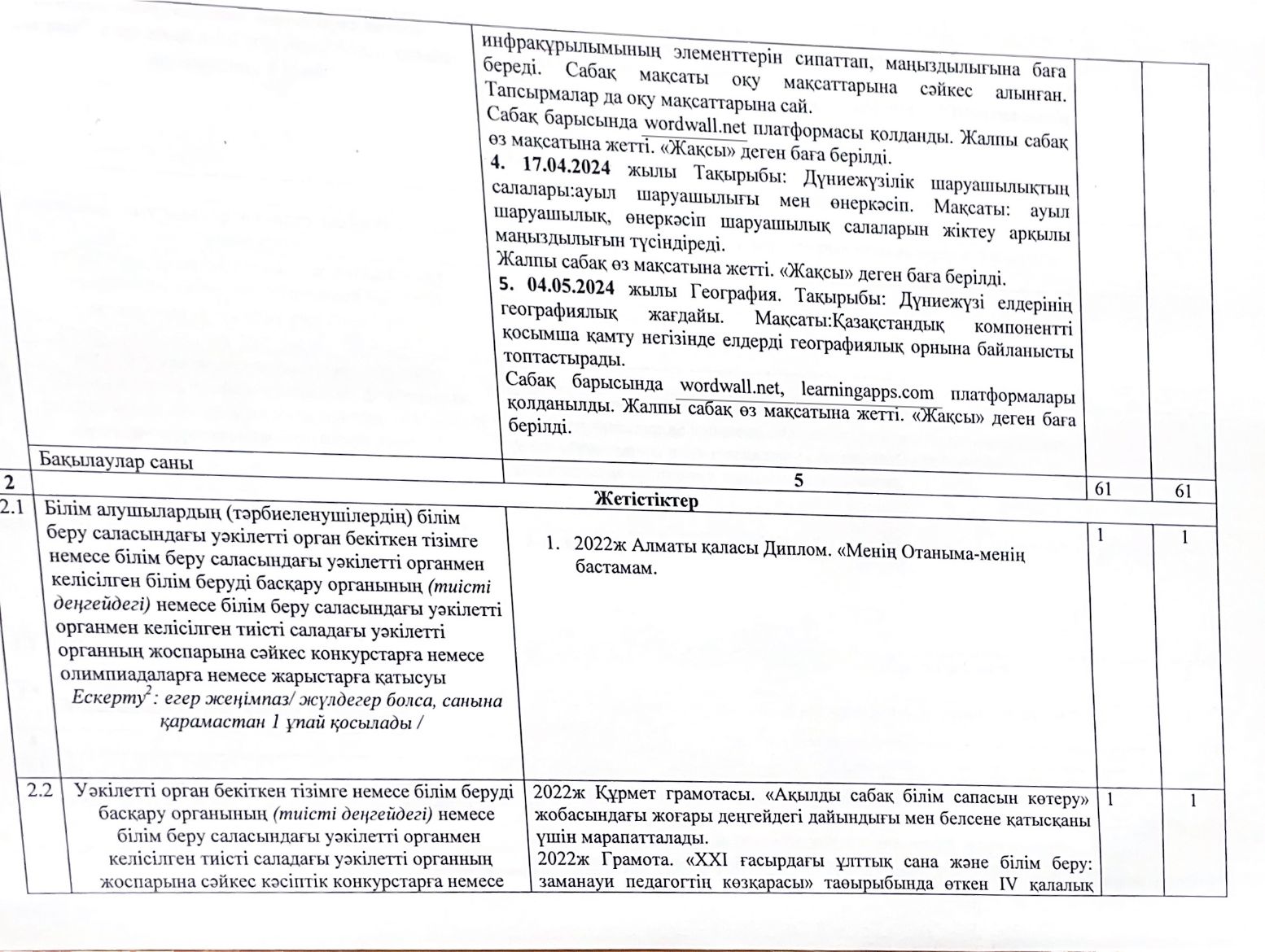 Оқушылар жетістіктері