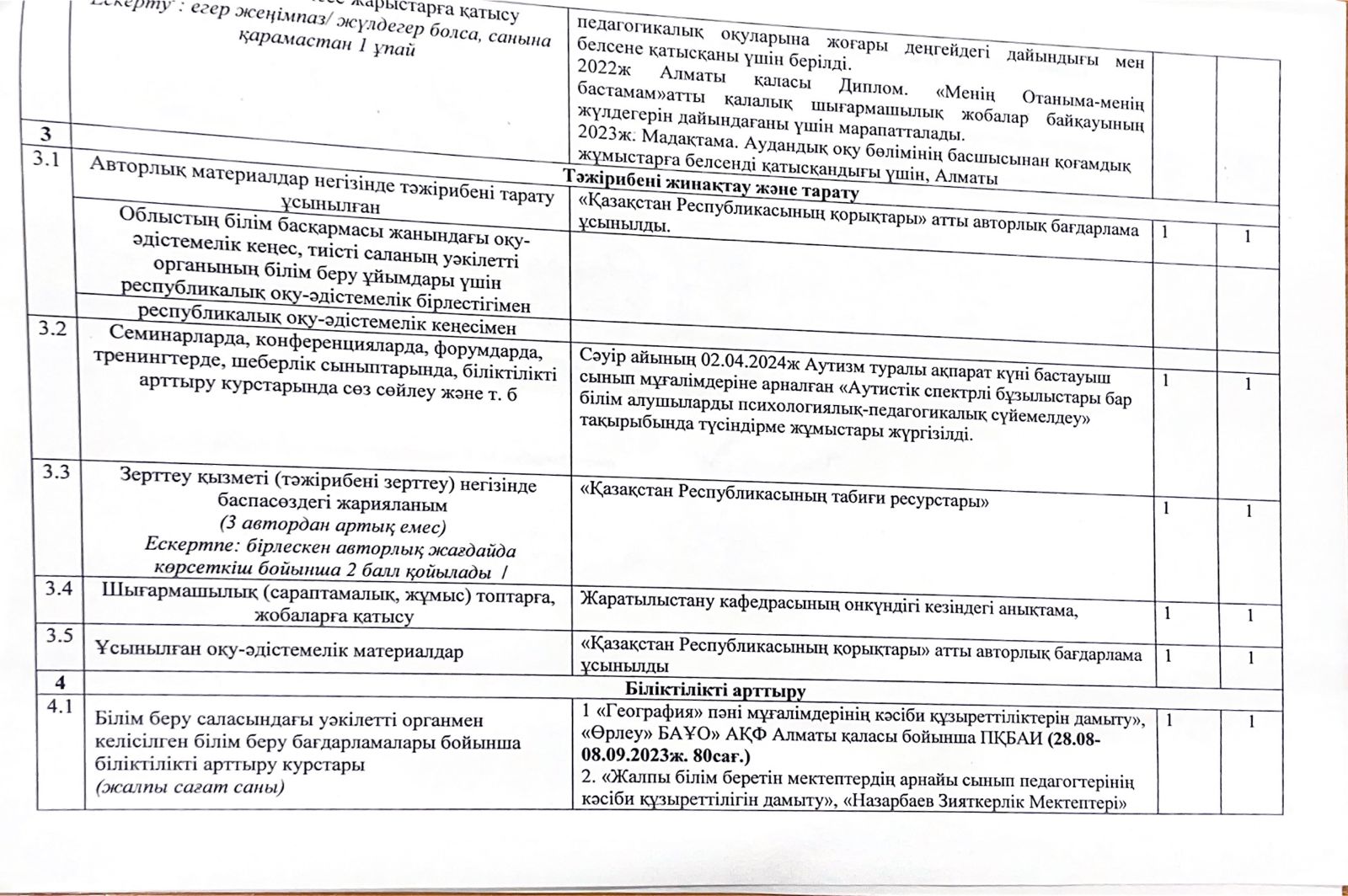 Бағалау парағы Жарғожа Нұрсұлтан