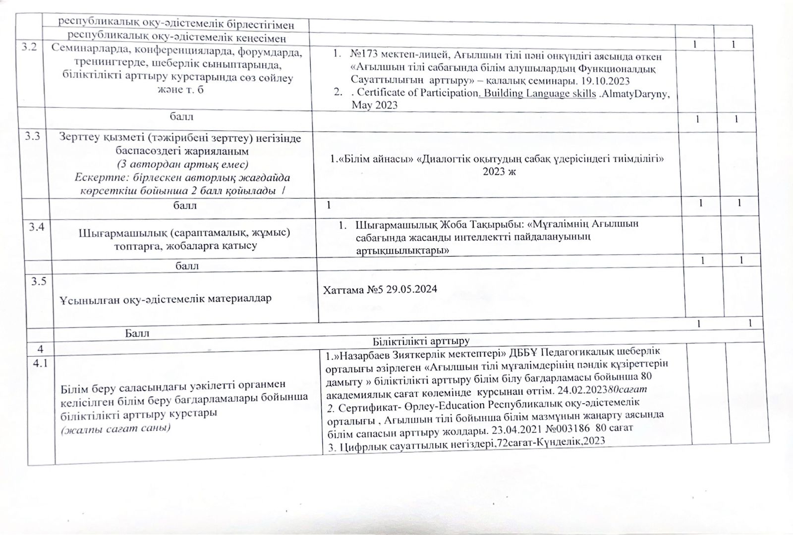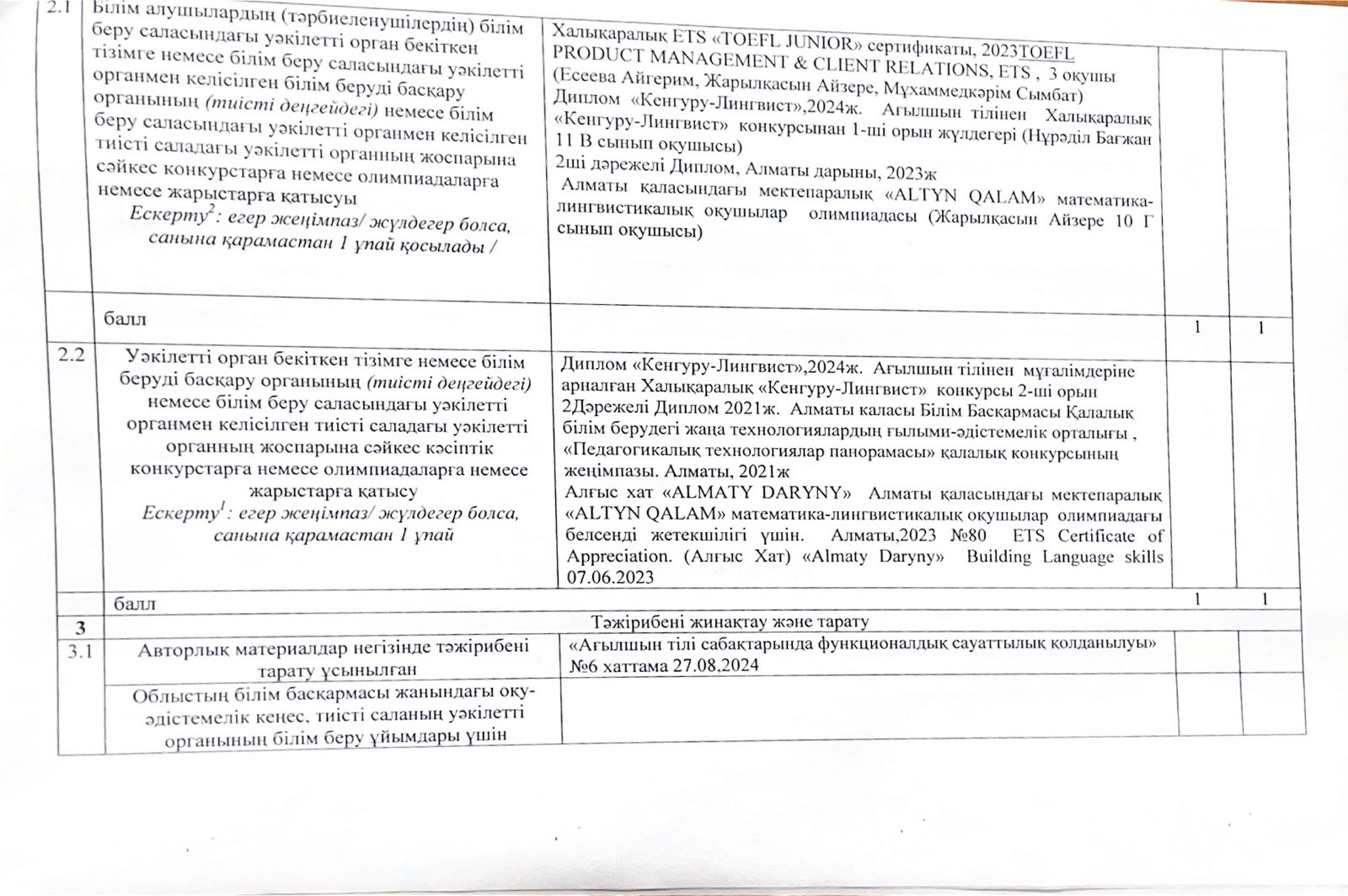 Бағалау парағы Токтасынова Гульден