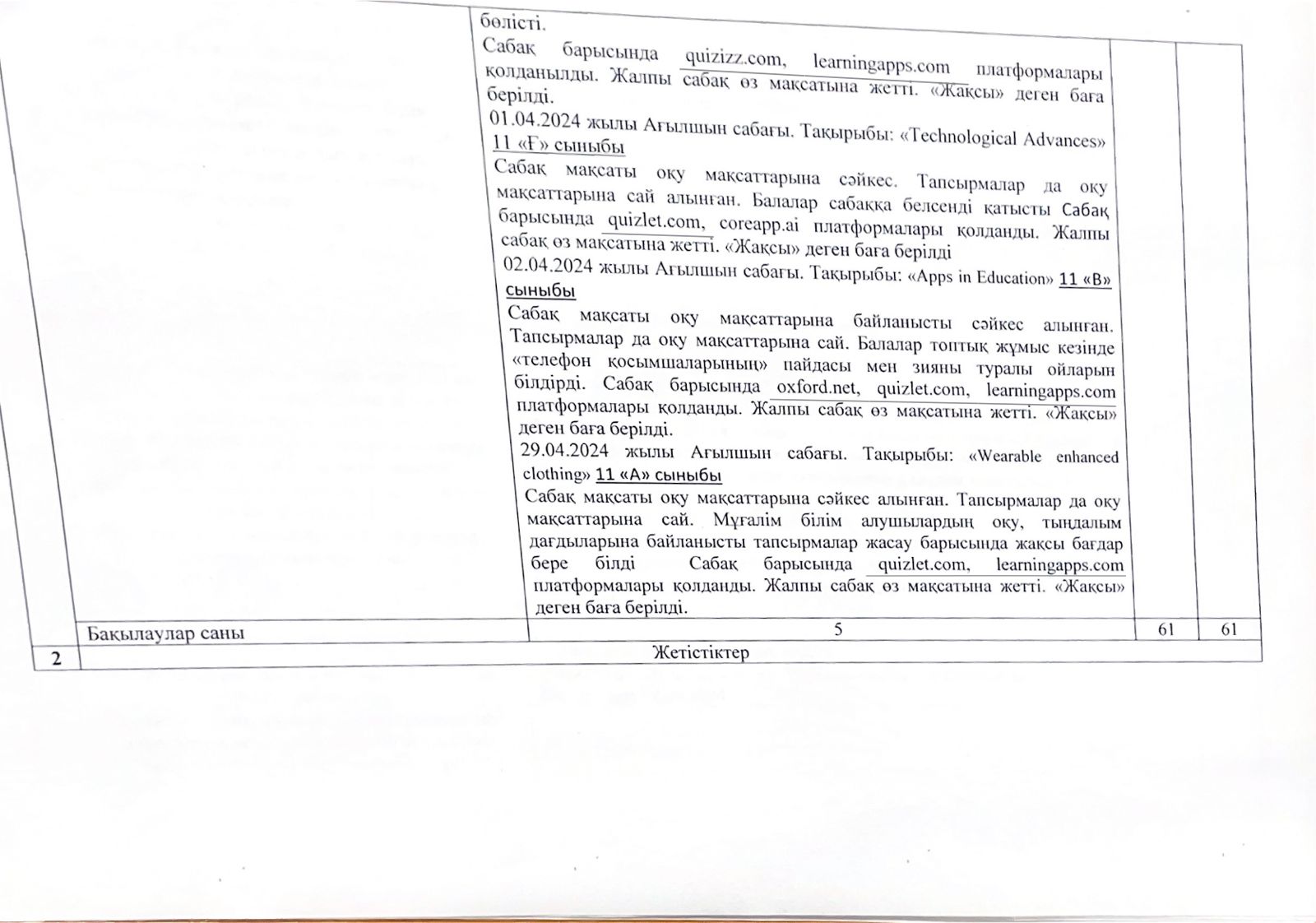 Оқушылар жетістіктері