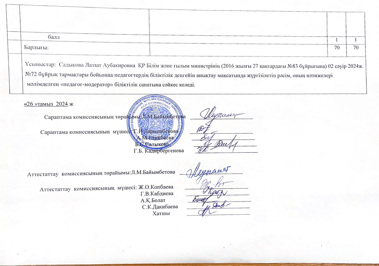 » Бағалау парағы Садыкова Лаззат