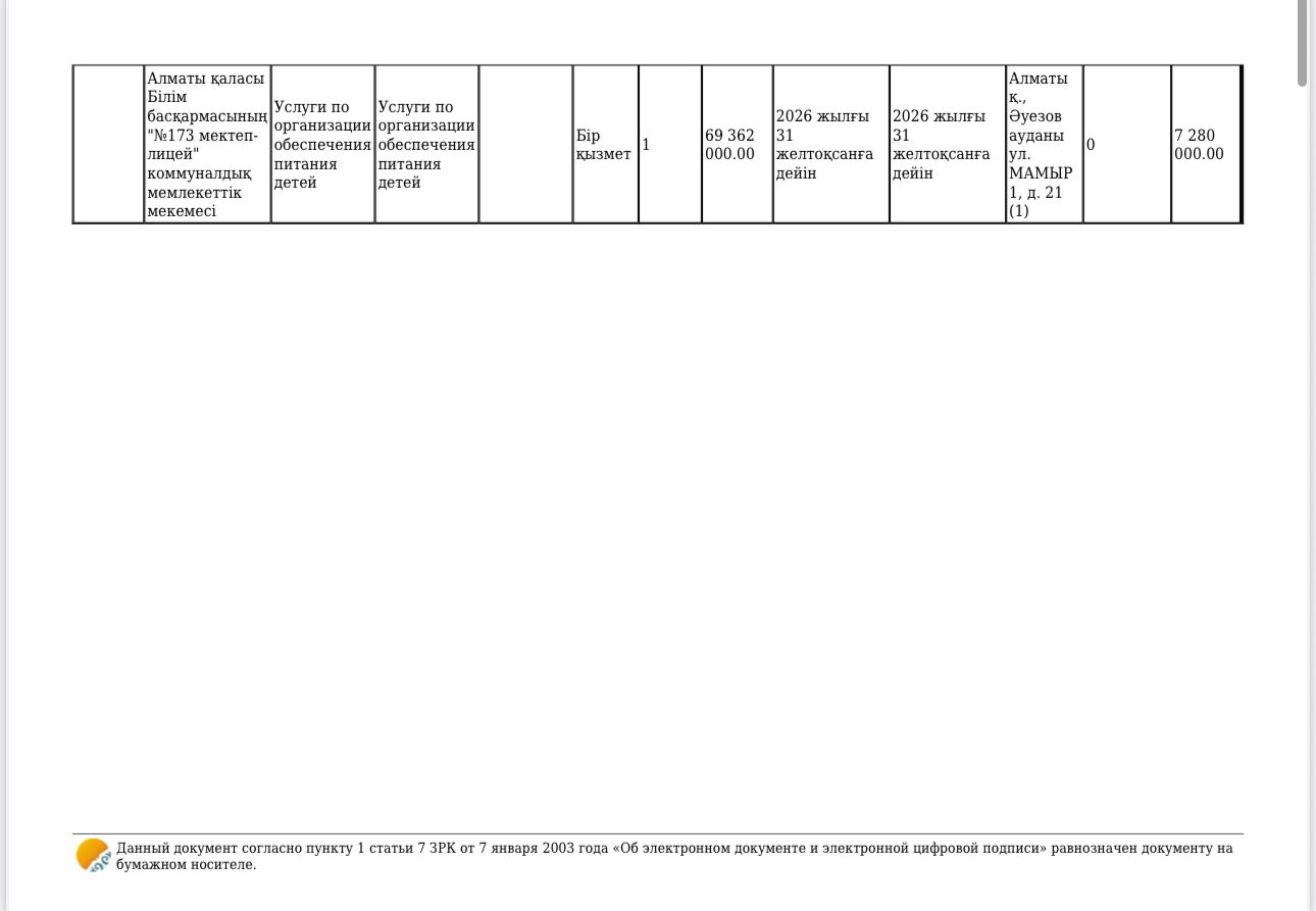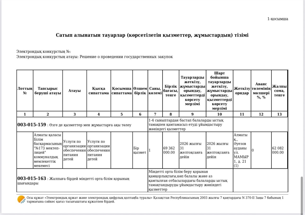 Тамақтану сапасына жасалған мониторинг қорытындысы