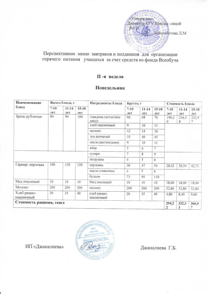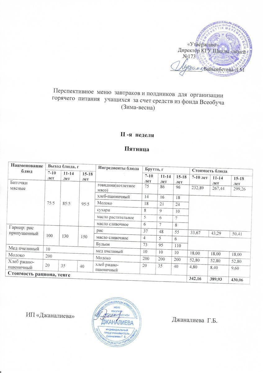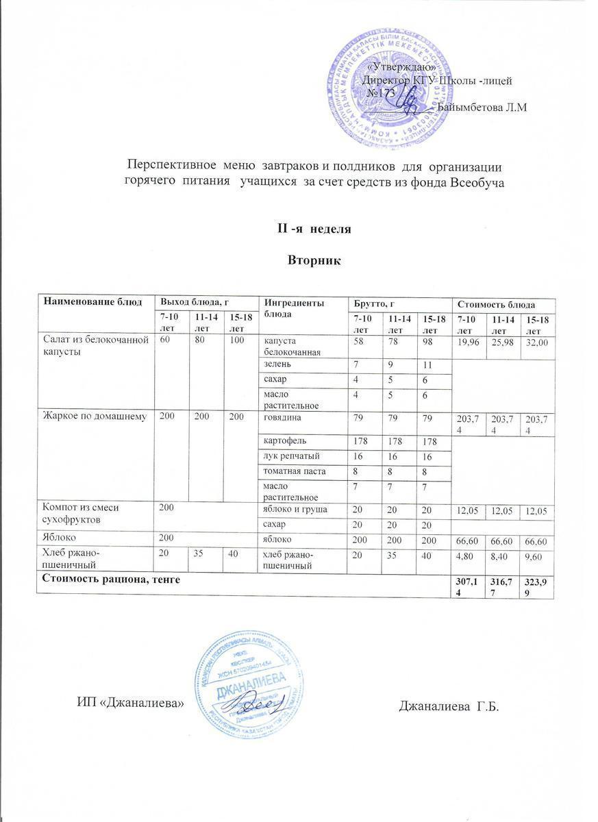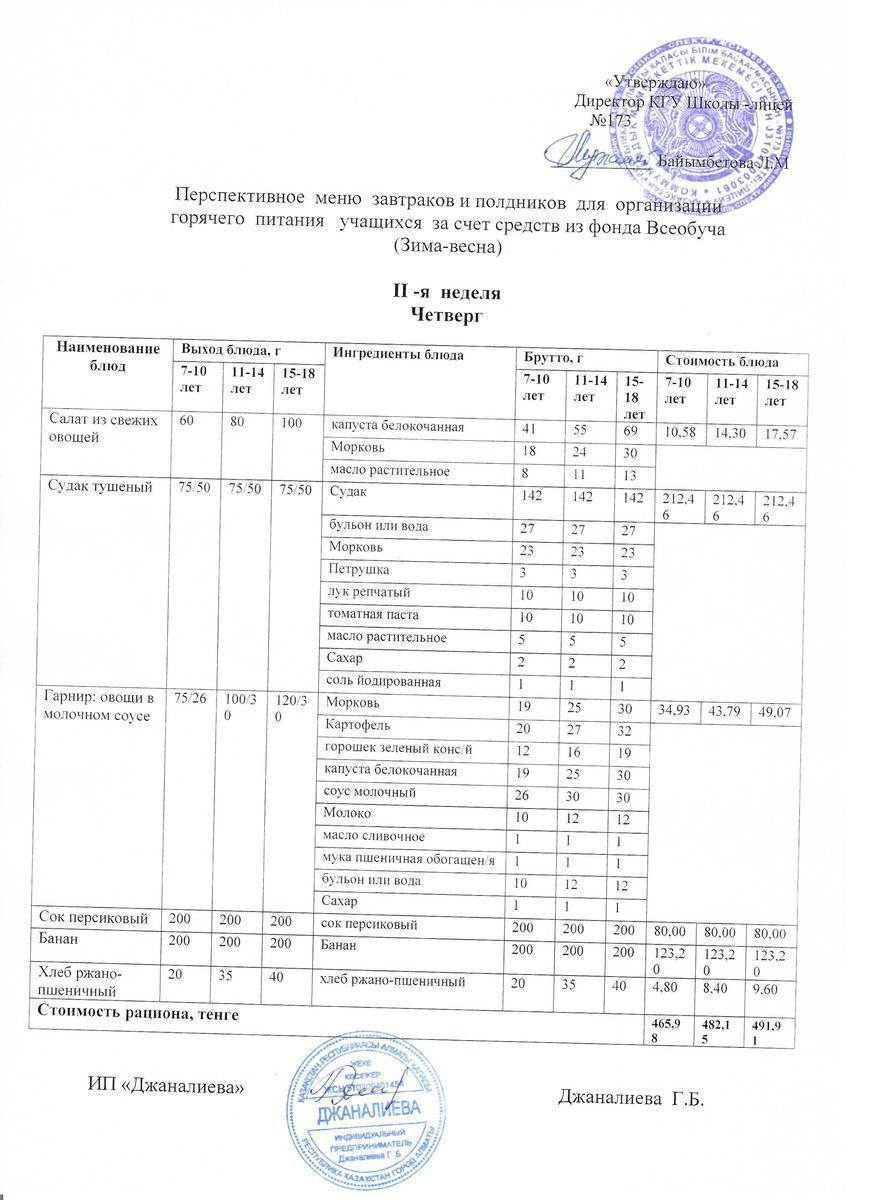 » Қыс-көктемгі ас мәзірі. 2- апта