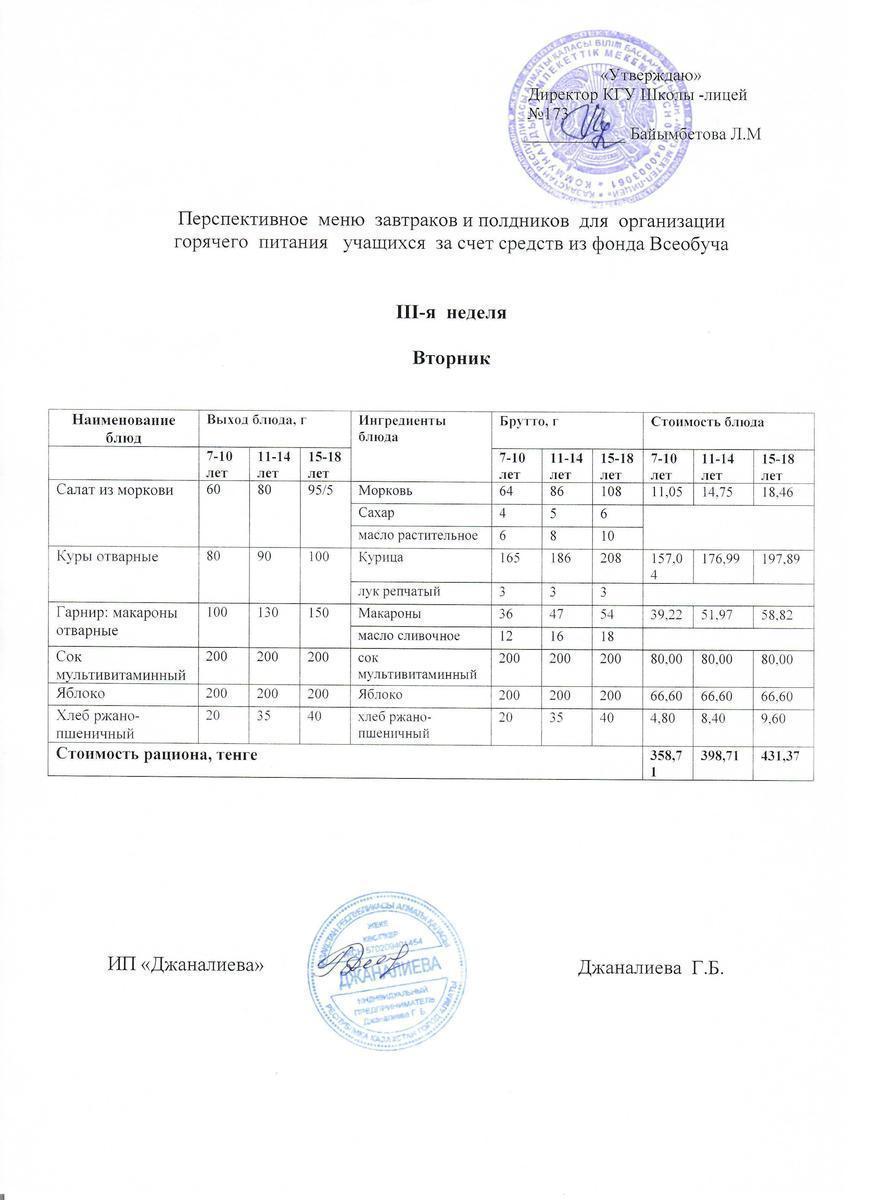 » Қыс-көктемгі ас мәзірі. 3- апта