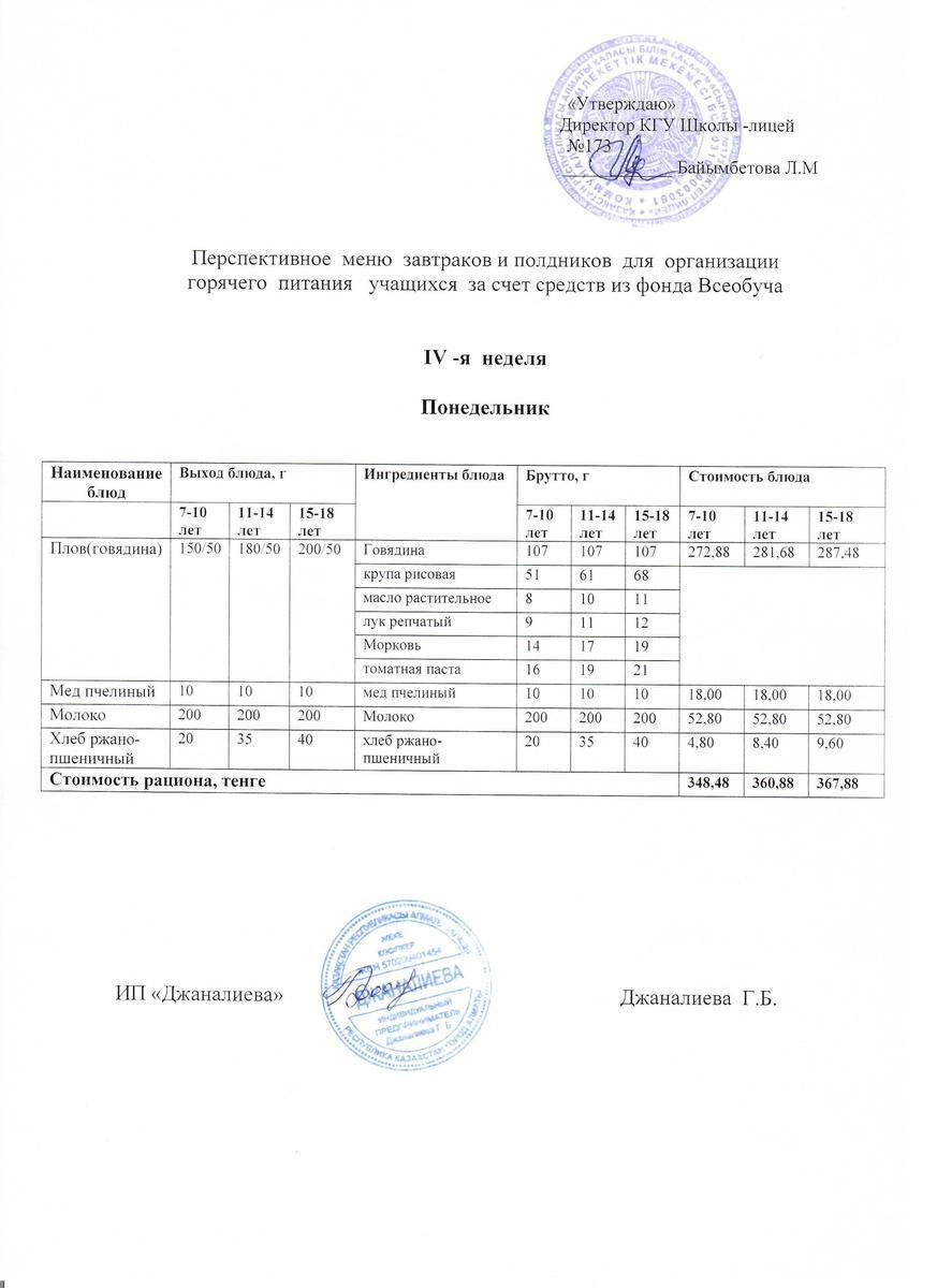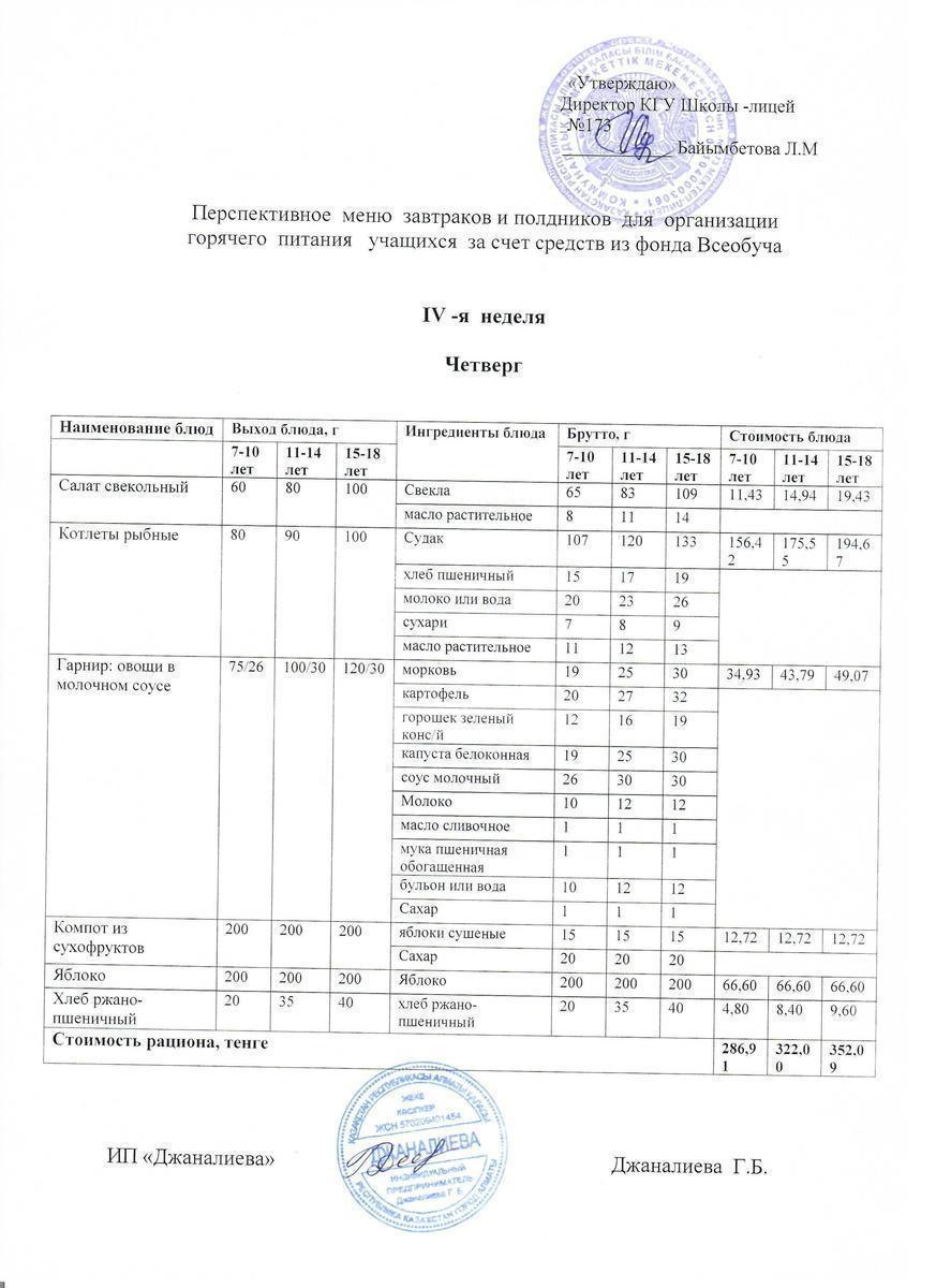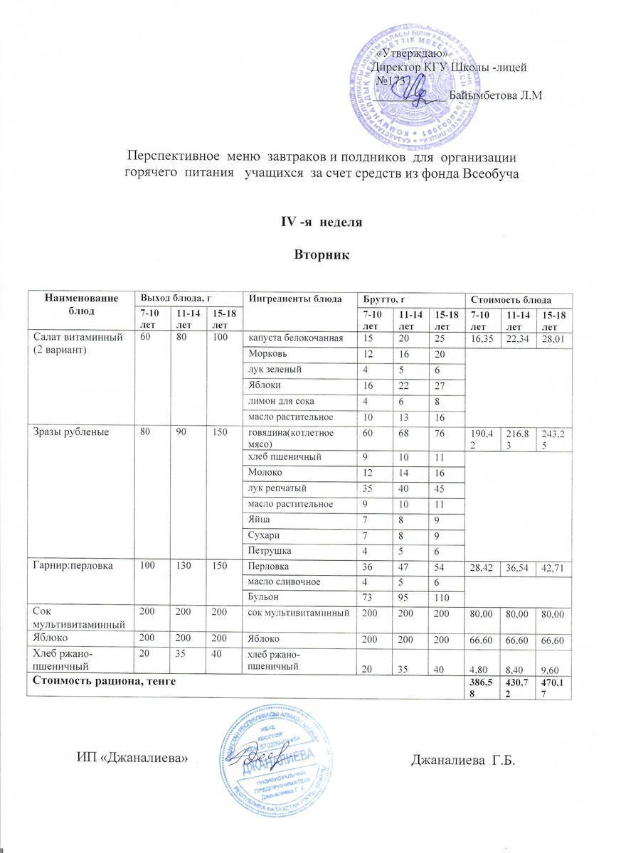 » Қыс-көктемгі ас мәзірі. 4- апта