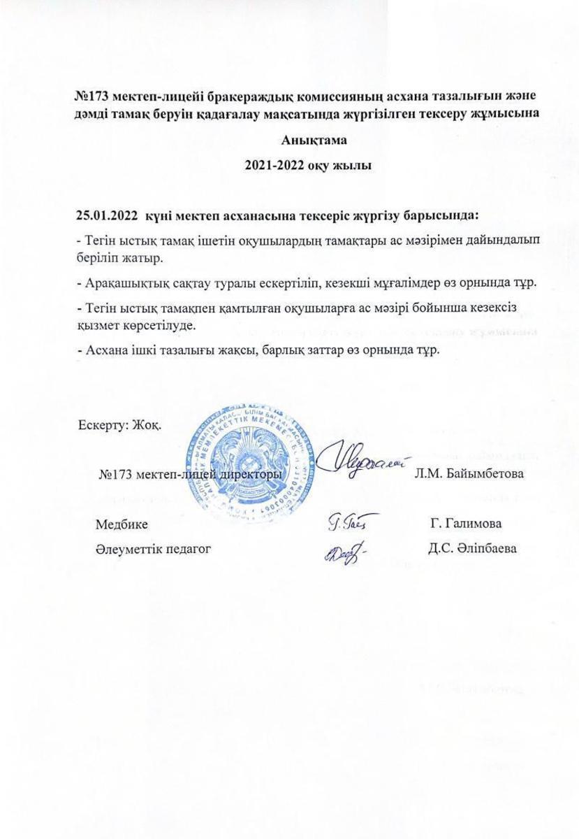 25 январь 2022 0 1 2 3 4 5 Бракераждық комиссияның асханаға жүргізген тексерісі жөнінде анықтама Осы беттің QR-коды:QR-код этой страницы: