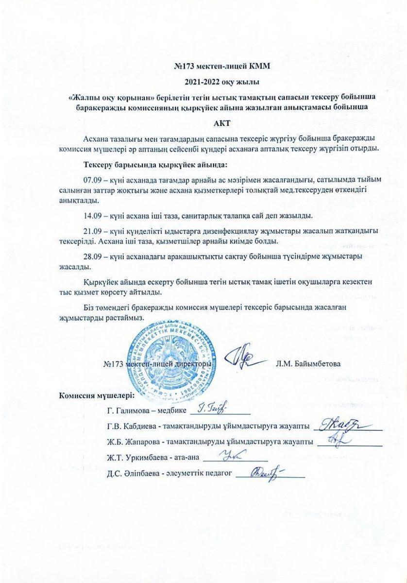 30 сентябрь 2021 0 1 2 3 4 5 Бракераждық комиссияның қыркүйек айына жазған анықтамасы бойынша АКТ Осы беттің QR-коды:QR-код этой страницы: