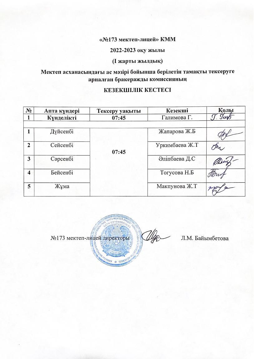 01 сентябрь 2022 0 1 2 3 4 5 Бракеражды комиссияның кезекшілік кестесі Осы беттің QR-коды:QR-код этой страницы: